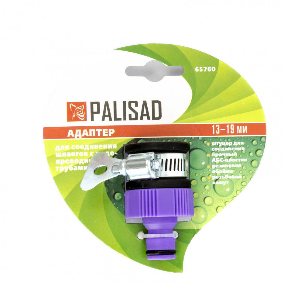 Пластмассовый адаптер Palisad 65760 с внешним хомутом и диаметром подключения до 3/4 дюйма используется для присоединения поливочной линии к водопроводной трубе ли безрезьбовому крану. Затяжной хомут обеспечивает надежную фиксацию. Адаптер будет полезен для организации системы орошения на дачном участке.