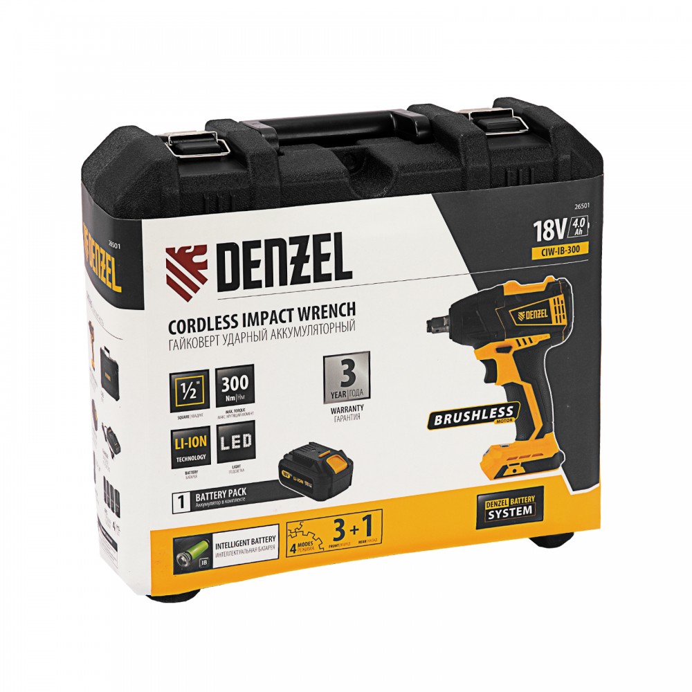Ударный аккумуляторный гайковерт Denzel CIW-IB-300 с батареей Li-Ion 18 В и бесщеточным двигателем развивает крутящий момент до 300 Нм. Предназначен для монтажа и демонтажа резьбовых соединений, легко справляется с перетянутым и закисшим крепежом.