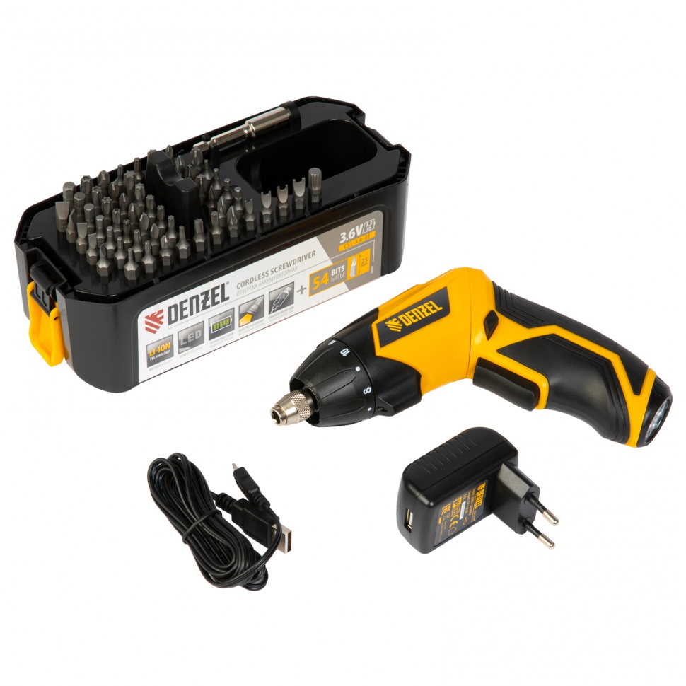 Аккумуляторная отвертка Denzel CSL-3,6-01 26001 с аккумулятором Li-Ion на 3,6 В и 1,3 Ач, в комплекте с аксессуарами, используется для работы с саморезами, шурупами и винтами. Быстро справляется с закручиванием крепежа благодаря максимальному крутящему моменту 4 Нм и частоте вращения 200 об/мин. Встроенный литий-ионный аккумулятор быстро заряжается, характеризуется низким саморазрядом, и отсутствием эффекта памяти, что обеспечивает эффективную работу.