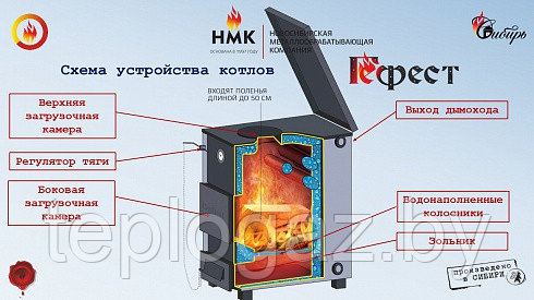 Для автоматического управления подачей воздуха в камеру сгорания на дверце зольника установлена воздушная заслонка, через цепочку управляемая энергонезависимым терморегулятором. В верхней части котла "Гефест" 30 кВт имеется загрузочный люк, который облегчает работу по закладке топлива в топочную камеру.