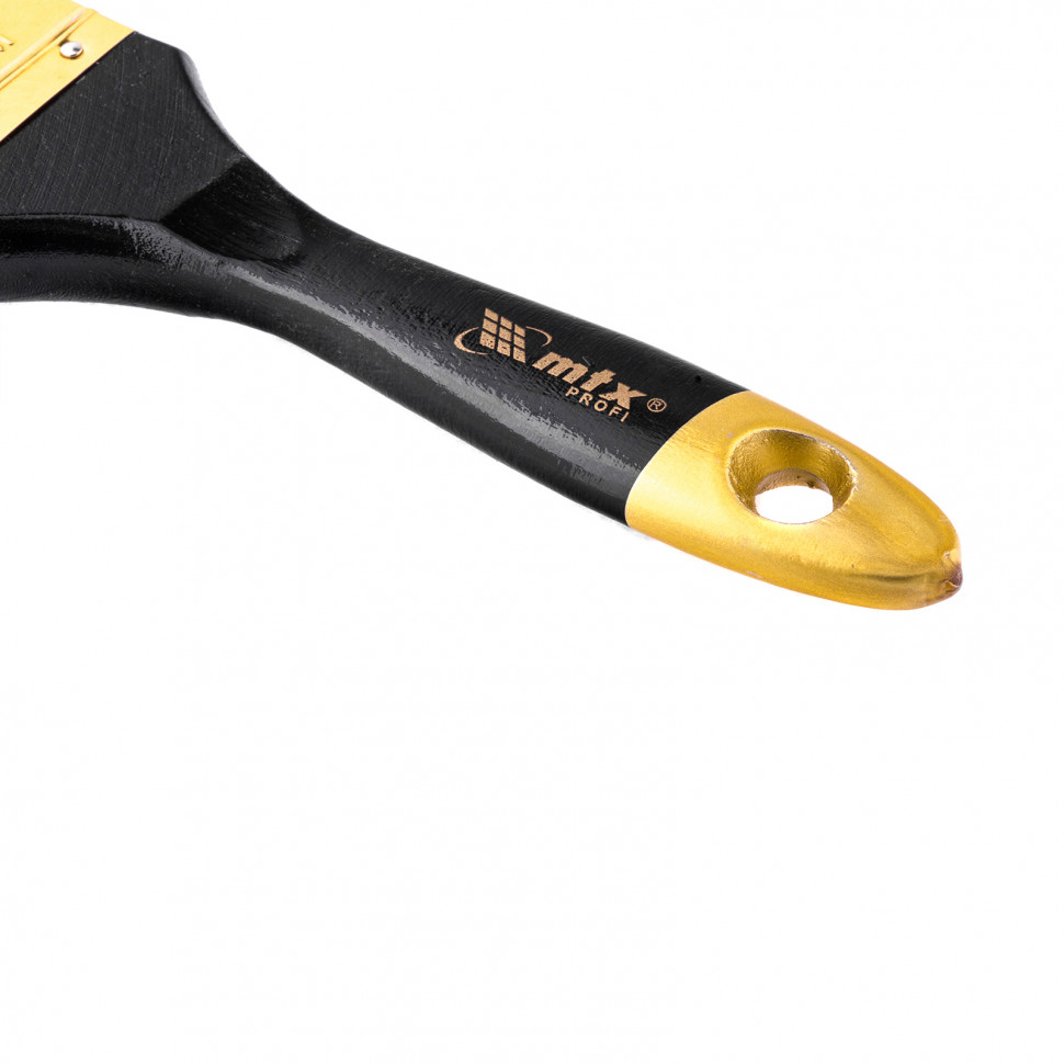 Плоская кисть «Профи» MTX 83153, 2,5 дюйма, с натуральной щетиной и деревянной ручкой, рассчитана на профессиональное использование при проведении малярных работ. Натуральная щетина с увеличенной плотностью набивки универсальна по своему применению и подходит для нанесения различных типов ЛКМ, в том числе с содержанием растворителей. Кисть шириной 63 мм применяется при необходимости окрашивания небольших участков.