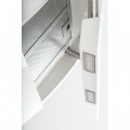 Уровень шума вытяжки — 42дБ, во время работы она не будет отвлекать от приготовления пищи, не помешает разговорам и отдыху. Внешняя панель выполнена из гнутого стекла. При включении передняя крышка поднимается, открывая алюминиевый фильтр.