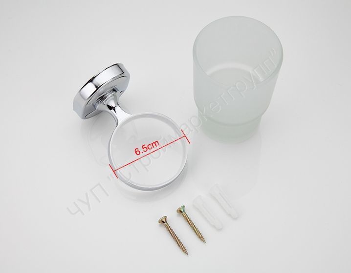 Вид: стеклянный стакан для зубной пасты и щёток с металлическим настенным держателем