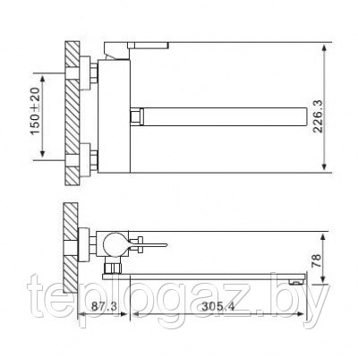 Смеситель для ванны с изливом 35 см и переключателем в корпусе хром