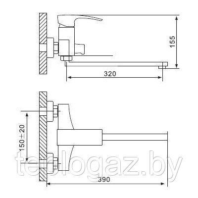 Смеситель для ванны с изливом 35 см и переключателем в корпусе сатин