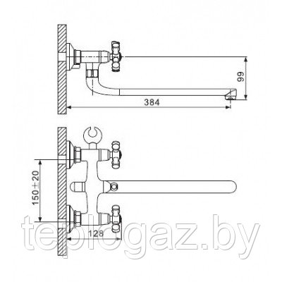 Смеситель для ванны с изливом 36 см и переключателем в корпусе хром