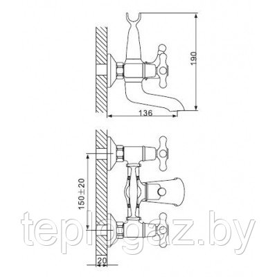 Смеситель для ванны с керамическим рисунком и переключателем в корпусе красное золото