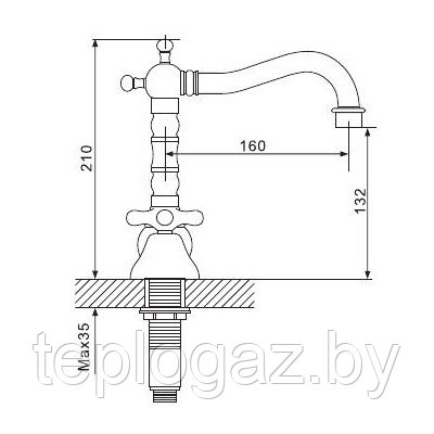 Смеситель для раковины на 3 отверстия золото